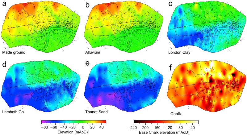 Beneath this crust of chalked sediment there is London Clay, which can’t be baked by itself. Unlike Sydney, there is no durable stone here to articulate any local vernacular. Clay lends itself to an inverse architecture of subtraction. Unfired clay swallows→shrinks→swells - it cannot be heaped into positive structures. It’s not its presence as a medium that matters, but the possibility of its absence for boring out subterranean spaces. The few skyscrapers in the city must bob on rafts ‘plunged-piled’ beneath the surface. North of the river, where the silt deposits thin out, we find even less bricks and more tunnels. There’s also at least 200 km of active tunnels in the transport network, and this doesn’t include Military Citadels, waste systems, or utilities. In 2017, Newcastle University reported that 4,650 new basements had been green-lit over ten years within a poxy data-slice of wealthy West London boroughs. 112 of these were ‘megabasements’, with three stories or more.1 Rather then expressing a relationship to its environment, this architecture interiorises itself below the subsurface.
